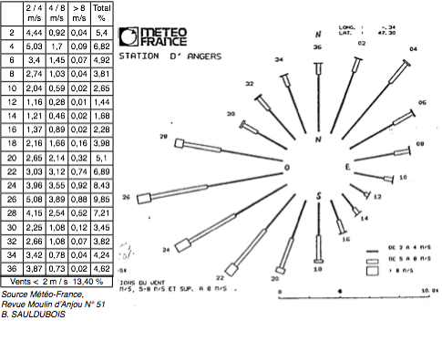 A partir des relevés de Météo-France, nous avons une idée assez précise du régime des vents en Anjou.
